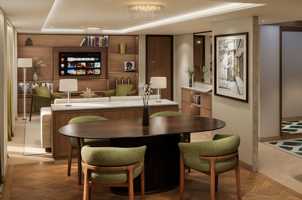 Der persönliche Butler-Service gehört in jeder Suite zum Standard und macht den Aufenthalt noch individueller. Hochwertige Details wie feinste Bettwäsche von Jesurum 1870, eine exklusive Kissen-Auswahl und ein durchgehend harmonisches Design unterstreichen den Anspruch der Crystal Grace, ein Zuhause auf See zu bieten – stilvoll, komfortabel und ganz auf die Bedürfnisse ihrer Gäste ausgerichtet.