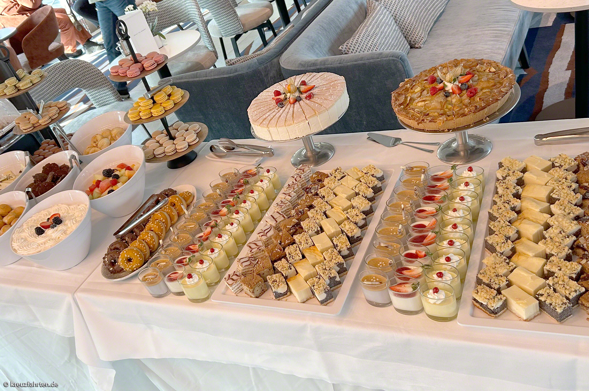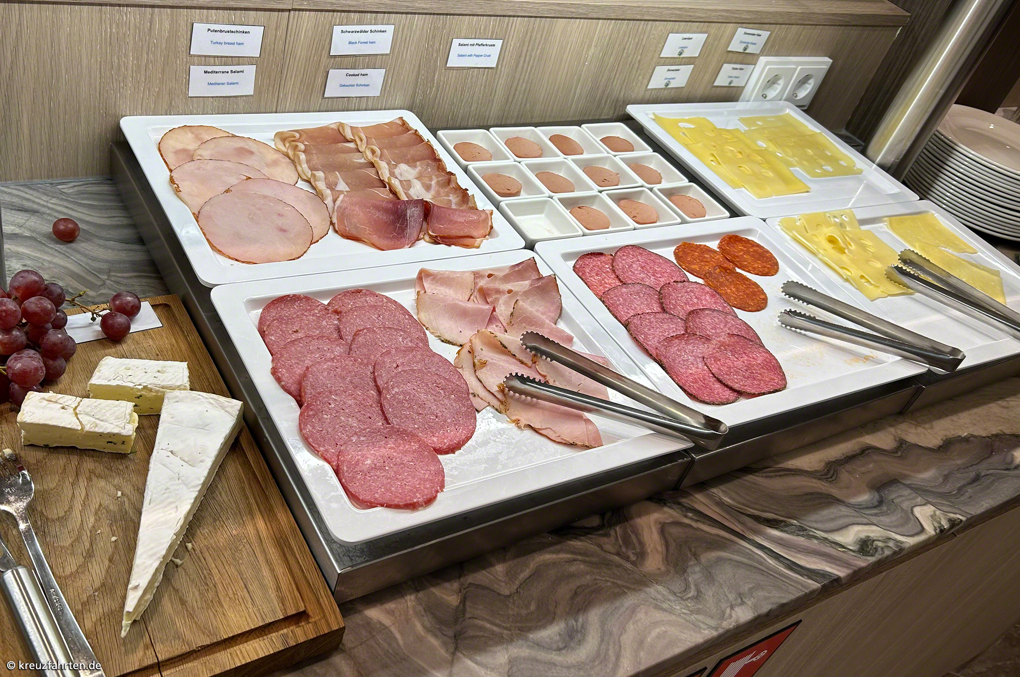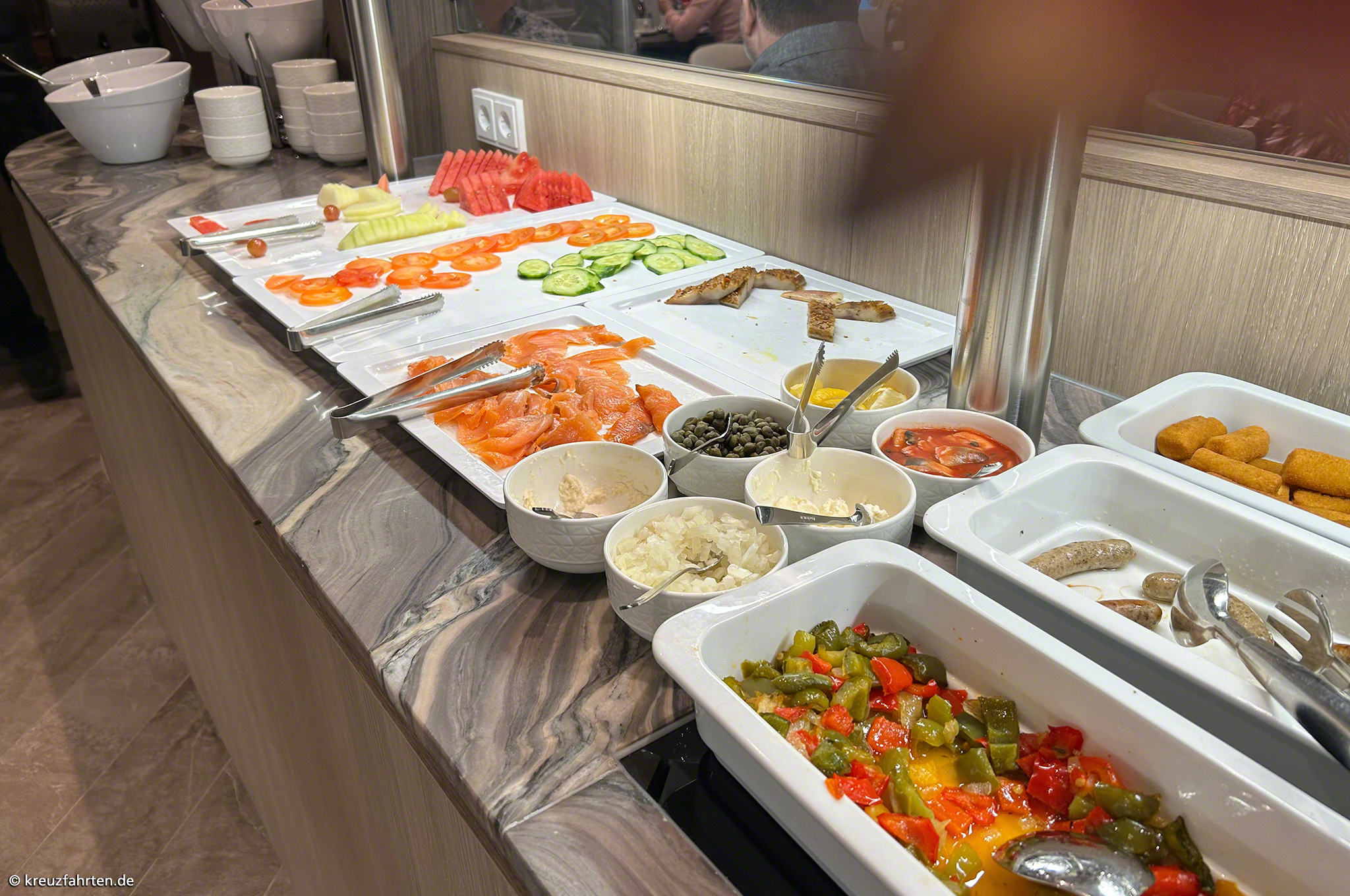 • Vollpension an Bord (Frühstücksbuffet, Mittag- und Abendessen mit Menüwahl, Snacks)